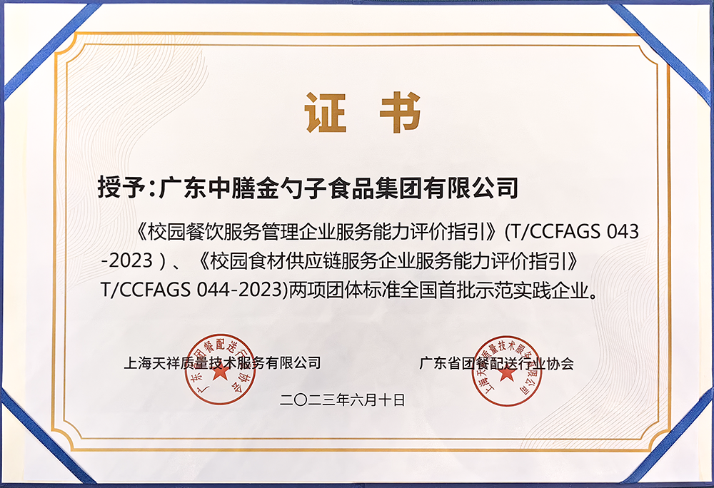 喜報 | 金勺子食品集團榮獲“2022年度全國校園餐企業(yè)百強”及“校園餐新標準全國首批示范實踐企業(yè)”稱號